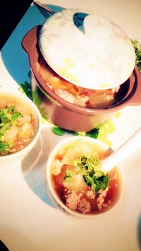 砂锅做水,水开,用筷子或勺子或直接用手将肉馅团成栗子大小的丸状,逐一下到锅里。