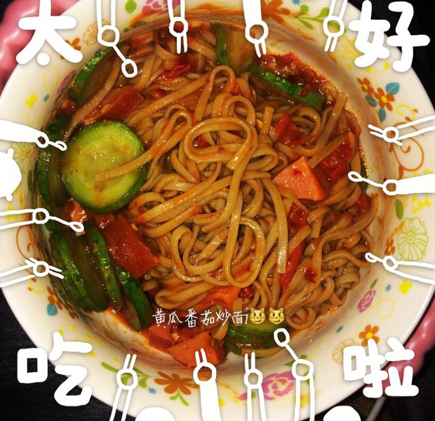 番茄黄瓜火腿剁椒炒面(电饭锅简易)