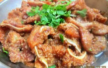 肉片中放入盐、白糖、甜面酱、郫县豆瓣酱、豆腐乳糊、番茄酱、料酒、胡椒粉、味精和生姜片