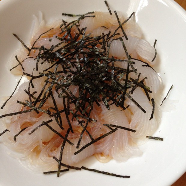 吃前拌一拌嫩滑爽口的魔芋丝裹上海苔丝鲜咸味满溢真是超好吃很满足