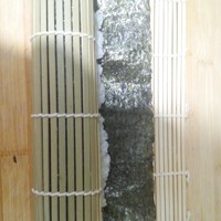 这部最关键,关系到你的成品是否松散。卷至图示位置,尽量向里扣,打开竹帘,把卷重新挪至底部齐平,再开始卷,这次卷到头儿差一厘米,抹少许香油,卷完