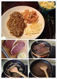 6、煎锅内放少许橄榄油,放入牛排煎制。依照个人口味煎至全熟或者几成熟。最后煎个蛋。