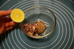 将橄榄油倒入小碗中,搅拌均匀~腌制配料就做好了