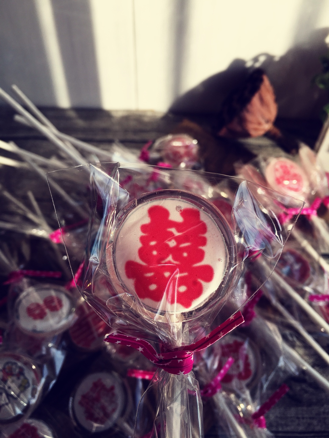 正面会有细小的气泡,看着图案模糊,不用急,用喷火枪烤一下,或者火烤都可以,就变成晶莹剔透的了。水晶棒棒糖在春,秋,夏天做,一定得注意空气的潮湿度,糖不容易干,最适合冬季操作了。