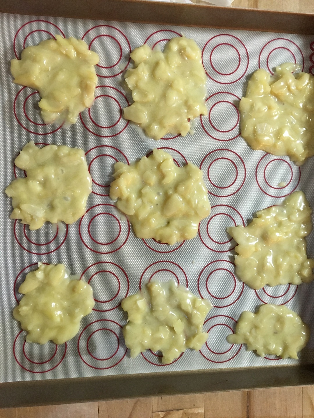 三、尽量摊薄才能酥脆,不让杏仁重叠才能达到薄脆的效果。
