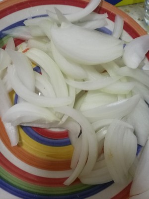 再放少许油,洋葱丝翻炒出香味,我放了葱花,后来觉得这很多余,哈哈
