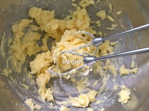 咖啡味:材料中高筋麵粉改為62g 低筋麵粉改為67g 糖霜改為50g 其他不變 先將純咖啡粉+熱水拌勻 放涼 把黃油、糖霜低速攪拌均勻後加入咖啡液一同打發 其他同上
