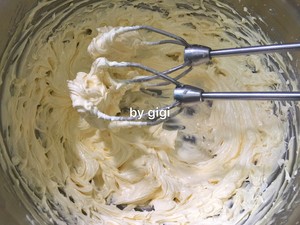 再開高速打發至顏色發白 體積有點松發 但不要打發過度 打發過度也會影響花紋成型!