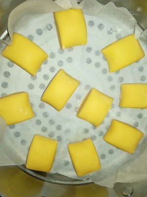 南瓜去皮切片,装盘后放蒸锅蒸。