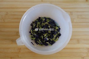 蝶豆花加开水浸泡20分钟,滤出130克水,冷却待用。