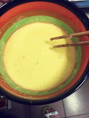 鸡蛋,生粉倒入碗中,加鸡精1茶匙,白糖2糖匙,搅拌均匀至黏稠状备用!