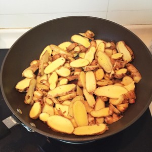 把姜片放入炒锅中,中火翻炒,将姜片炒至略干。