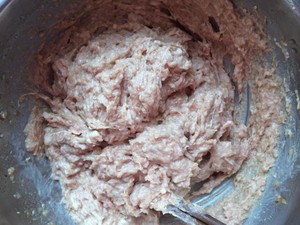 放五香粉、鸡粉、盐、料酒、几滴香油、少许老抽(当然不喜欢颜色深的话可以放生抽),这时候提前泡好的花椒水就派上用场了,分几次加入馅料,用筷子顺着一个方向搅拌上劲。花椒水加入可以提鲜去腥。