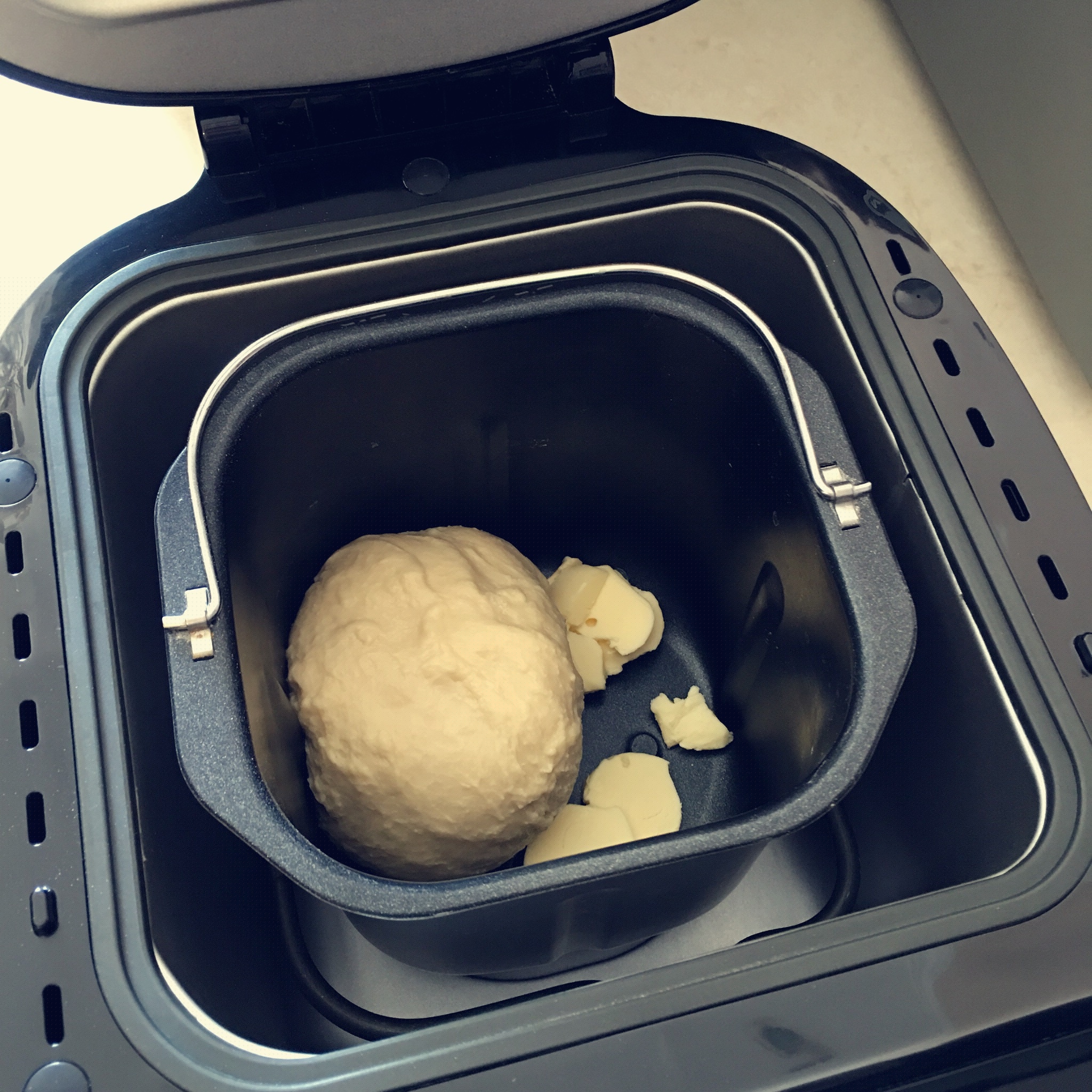 面包机桶依次放入牛奶,蛋液,盐,细砂糖,奶粉,面粉,最后放酵母。