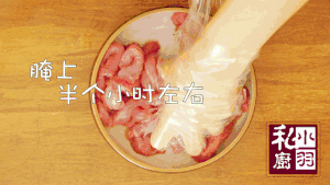▲然后放5克的盐,3克的白胡椒粉,再打入一个鸡蛋的蛋清,用手抓匀,腌上半个小时左右。