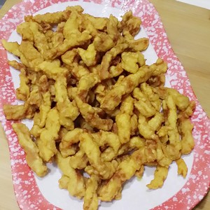 腌好后的里脊肉放点水在放入淀粉,面粉,拌匀,记得,拌好的肉条一定是稀稠,确保肉条均匀沾到面粉糊