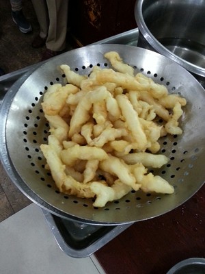 脆皮糊:一斤面粉+37克泡打粉+200克生粉+少量吉士粉+少许清油+适量的水,然后朝一个方向搅拌均匀。