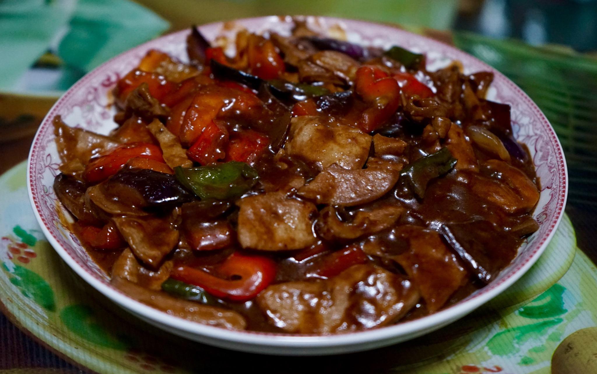 再开火 倒油 油热了之后加入姜 蒜 爆香 然后加入洋葱 一起爆香 随后加入甜面酱 按照自己的喜好控制量 做这个步骤的时候我以为洋葱烧焦了 因为甜面酱下去以后全部变黑了 这个时候怕烧焦的话就关小点火吧