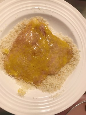 然后裹鸡蛋糊(全鸡蛋),再粘面包糠