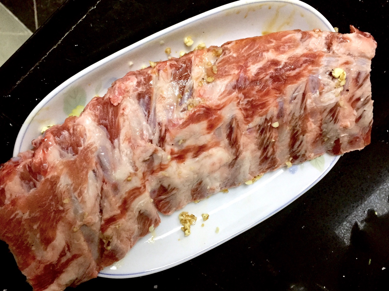 配图的酱汁是腌制后怕表面快速糊掉而扒拉出来的。烤好的肋排是不需要酱汁的。但我把料烧制摆拍是未来画面配合一下而已,它已用在了另外一个菜品上。
