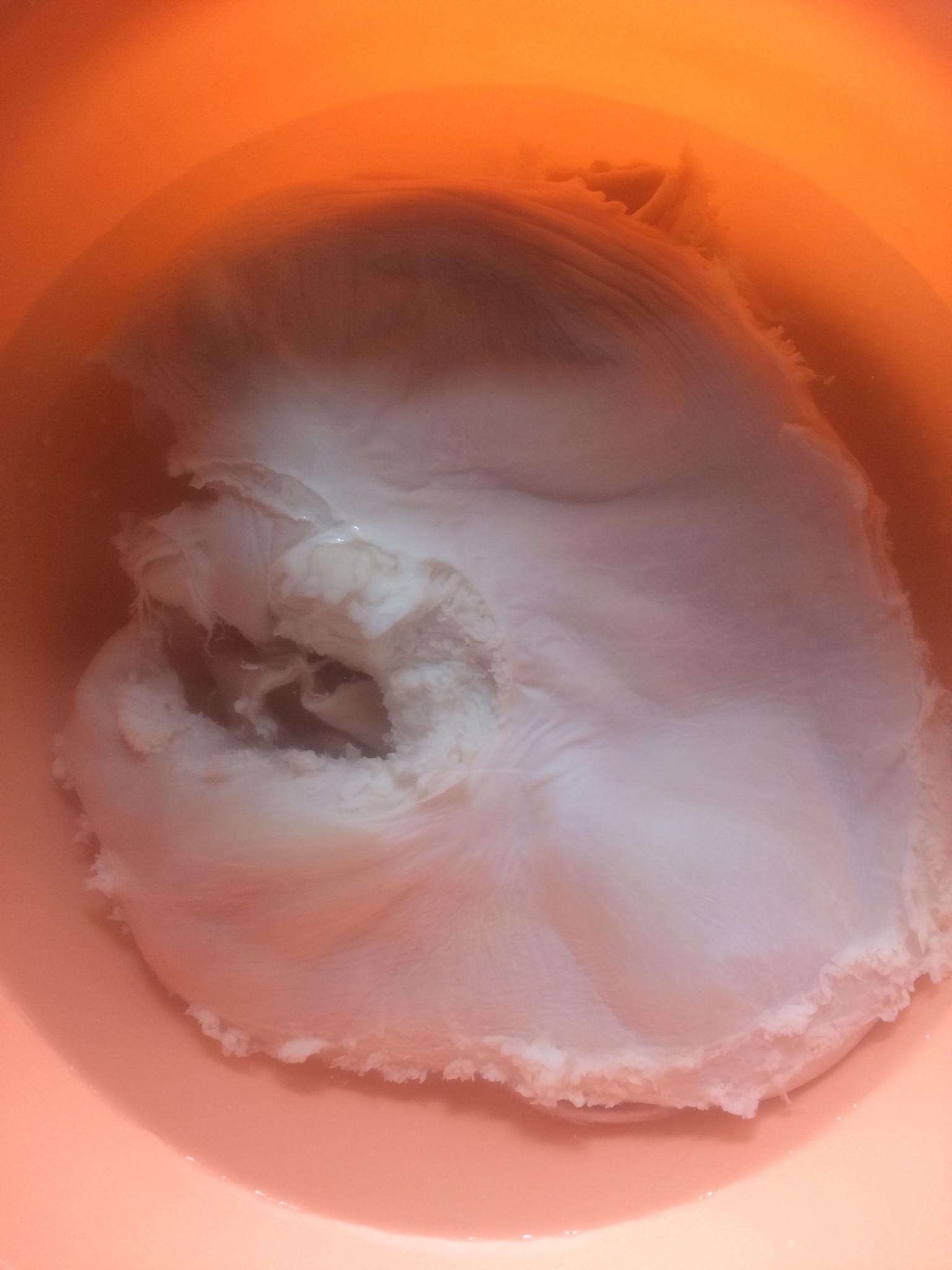 清洗猪肚:先用自来水冲洗外面,然后把猪肚翻过来洗里面
