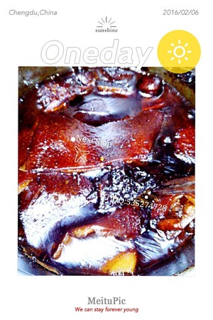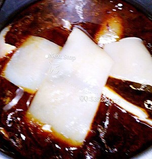 加少许老抽、盐和水(水淹没猪皮即可),水开后转小火,煮30分钟。