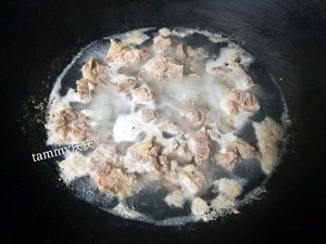 把骨头从冰箱里拿出来,用自来水把盐冲洗掉,放另外一个锅里焯水,水要没过骨头的量,开大火把水烧开,把骨头的血水煮出来,撇开泡沫,捞起