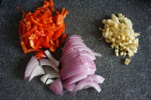 红泡椒.洋葱..切好!