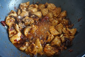 再放郫县豆瓣酱.白糖.白胡椒粉.爆香...