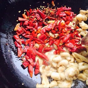 姜,蒜翻炒后下辣椒换小火,这个下后很容易焦