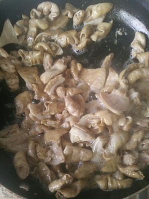 肥肠炒香后,蒜末,姜,小米辣,下锅爆香