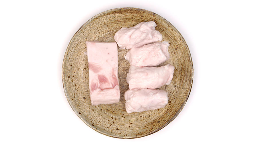 用温水将肥肉和板油清洗,然后擦干表面的水分;