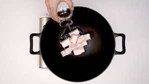 冷锅下肥肉,加冷水没过底部,盖上锅盖,中火煮10分钟;(加水是为了避免肥肉与热锅直接接触而焦化,影响猪油的成色与风味)