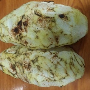 柚子皮将外面绿黄色皮削去,尽量削干净点,因柚皮苦涩味来源在这绿黄皮。