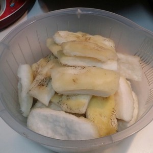 将浸泡好的柚皮挤干水份,切件处理待用,