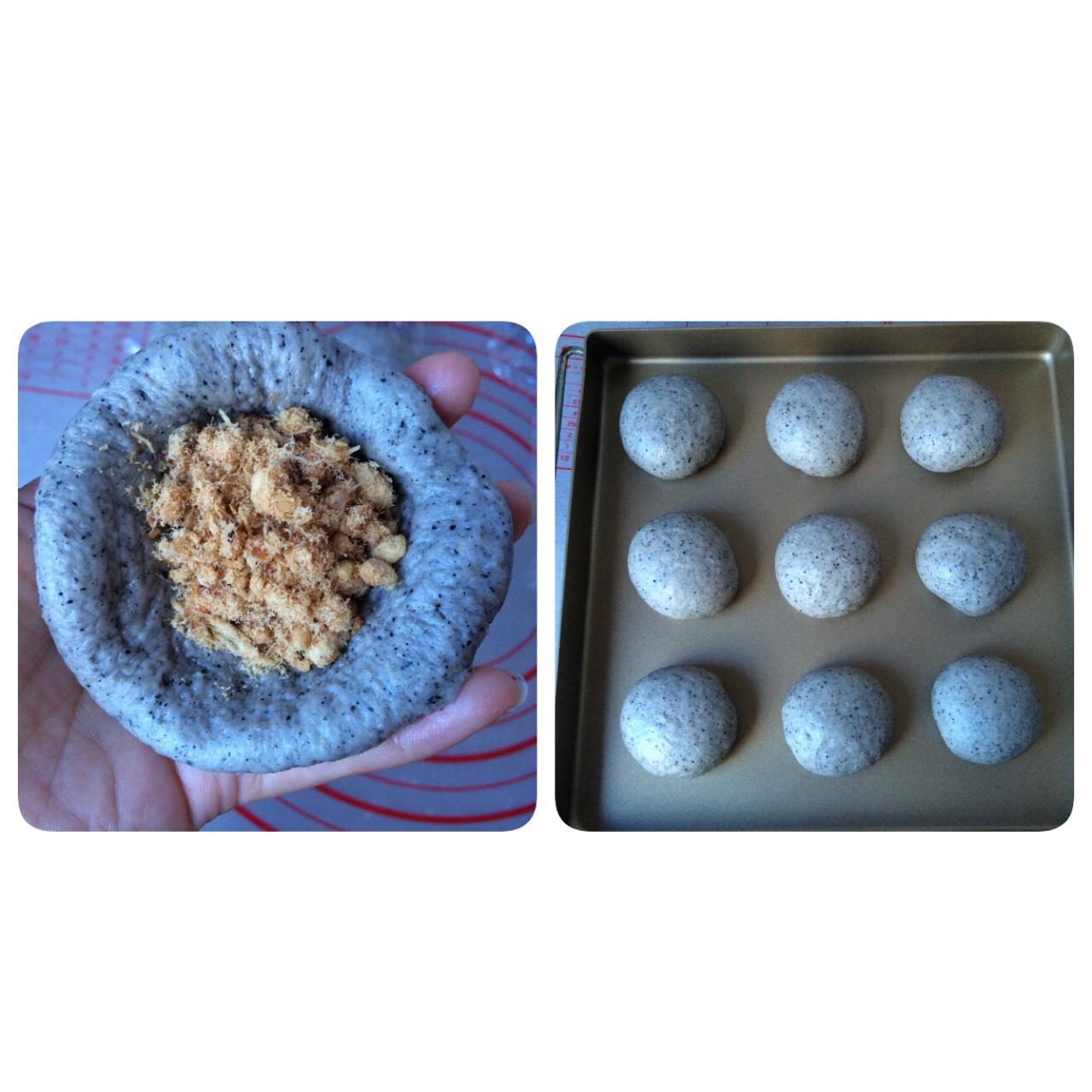 放温暖处发酵至两倍大,排气分割成九分,揉圆松弛15分钟。
