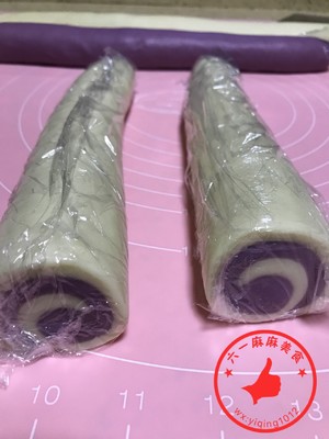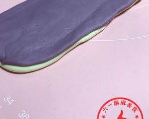 然后加入一半的面粉和成面团,另一份加入紫薯也和成面团