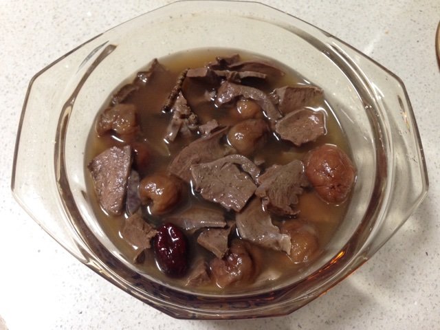 喜欢酒味的可以多加点黄酒炖,猪心先用高压锅压过,肉质比较松软。加桂圆炖口味会比荔枝干清淡点,桂圆家里没有了,所以加了荔枝干。
