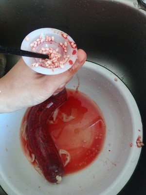 猪肠衣也要提前浸泡一小时左右,我是和糯米一起泡的,泡了一个晚上,我还在里面加了一些料酒,因为不是必要的,所以我在食材里也没有写。