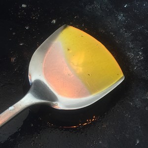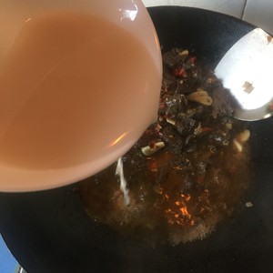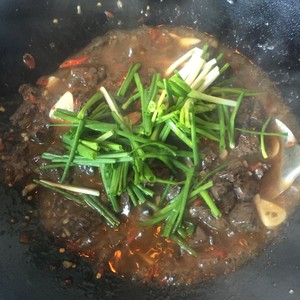 血烧熟后把地瓜粉水倒下去,迅速炒开,勾芡后的羊血口感会非常顺滑