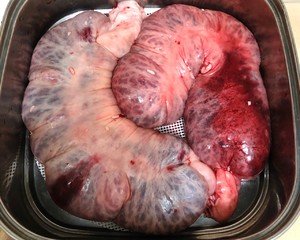 7.翻面清洗干净后,摘取掉多余的脏物和脂肪就可以翻回正面了。