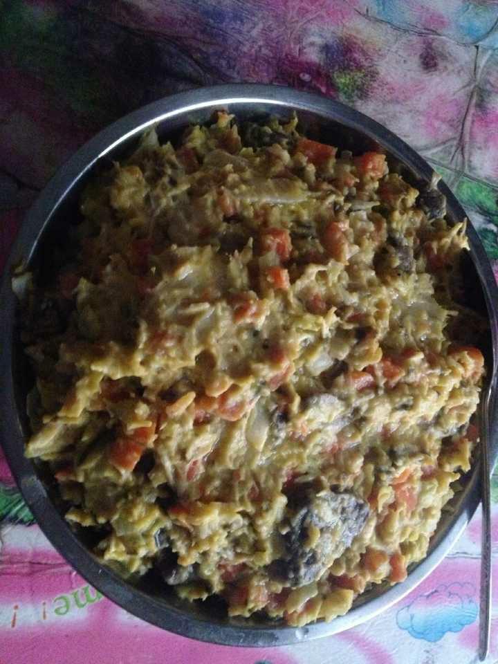 奖煮好的鸡胸肉还有红薯(捣成泥)加入到胡萝卜、白菜,紫菜盆里,打入5个鸡蛋,加入适量面粉。