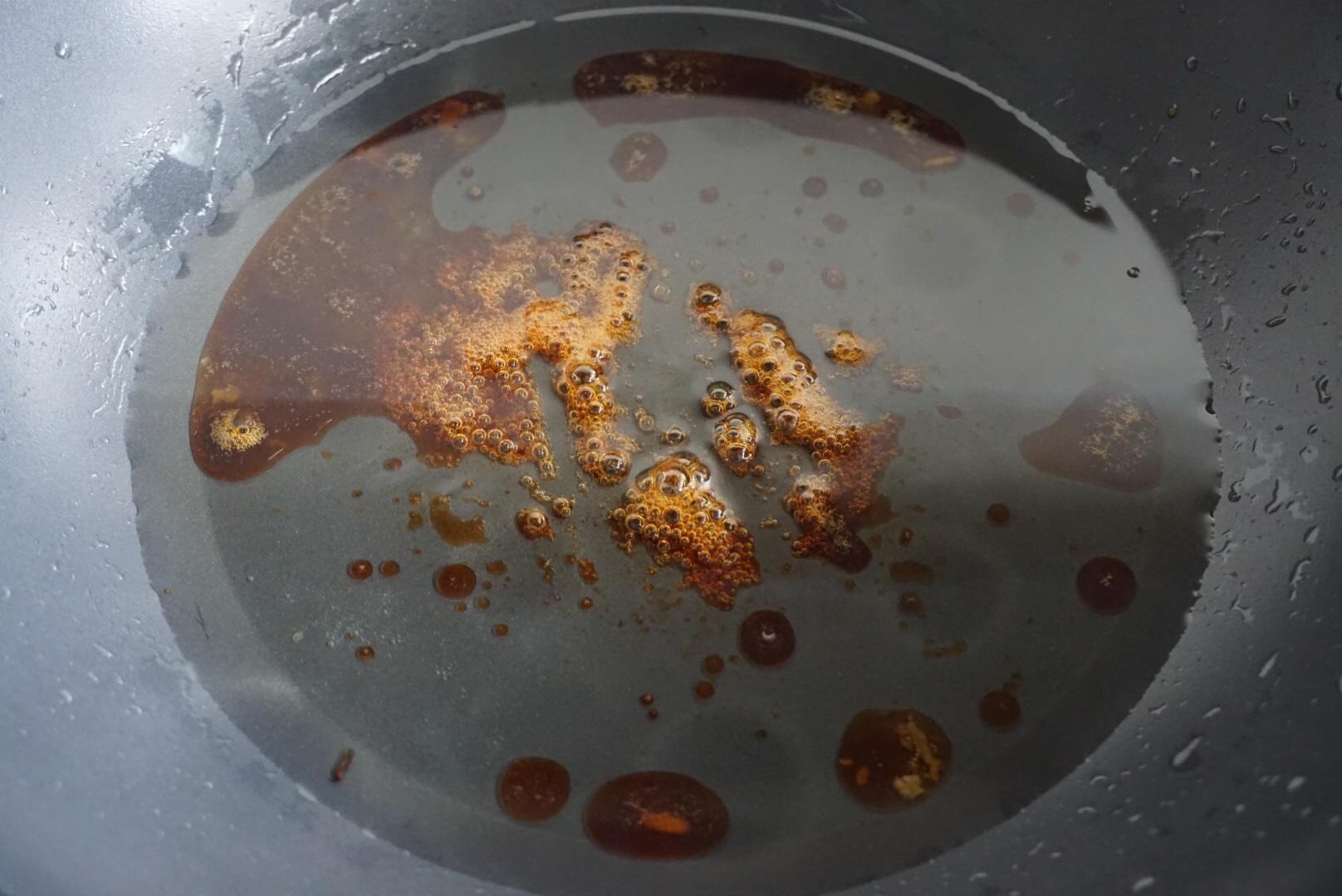 动作要快.不然冰糖炒的糖色非常容易糊.