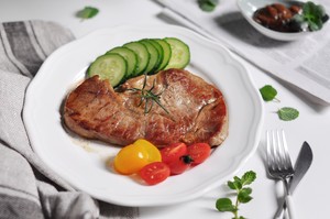 牛排在煎之前要经过腌制入味。煎牛排时切忌用铲子按压牛排,这样煎出的牛排肉质较老无肉汁