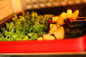 羽衣甘蓝,撕小片,喷上橄榄油和盐抓匀烤制。