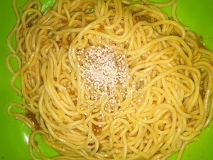 煮意大利面两分钟,捞出后立即冲凉水,这样会更加劲道