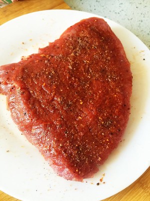 牛肉用刀背拍一下,放黑胡椒腌料腌一会.