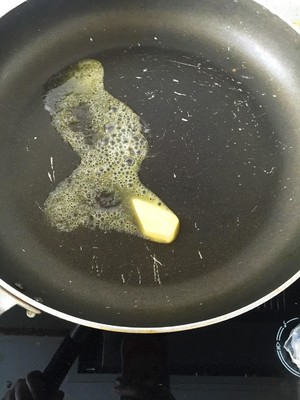黄油放入锅中融化.