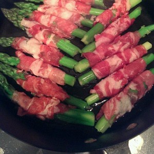 肥牛解冻好,一片一片的分别将芦笋裹起来。