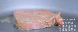 加热热锅至油烟升起,每面煎一分半钟,至五分熟,侧边煎制30秒后出锅。